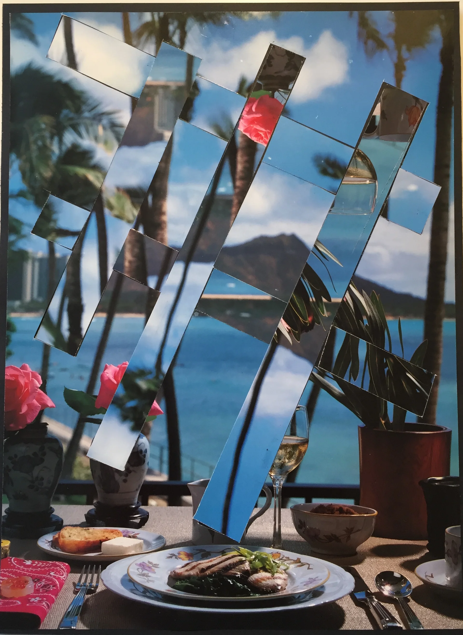 Hollywood Series: Employing vintage magazines and clippings, the forms attempt to move into the space with perspective and geometric abstraction. Since many of the spaces no longer exist, it evokes a presence that was once there and an absence of trying to be there as a viewer and finding out about its history through the interior design.